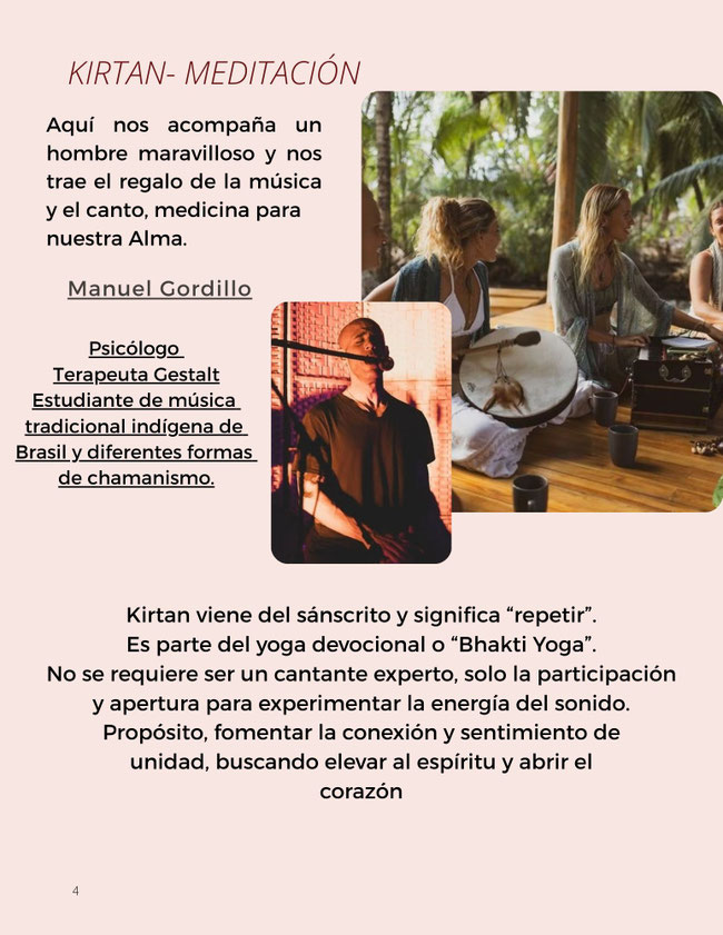 Las actividadess están inspiradas en la tradición yóguica, habrá prácticas de yoga en pareja, vinyasa, yoga, meditación, pranayama, kirtan, tandava.